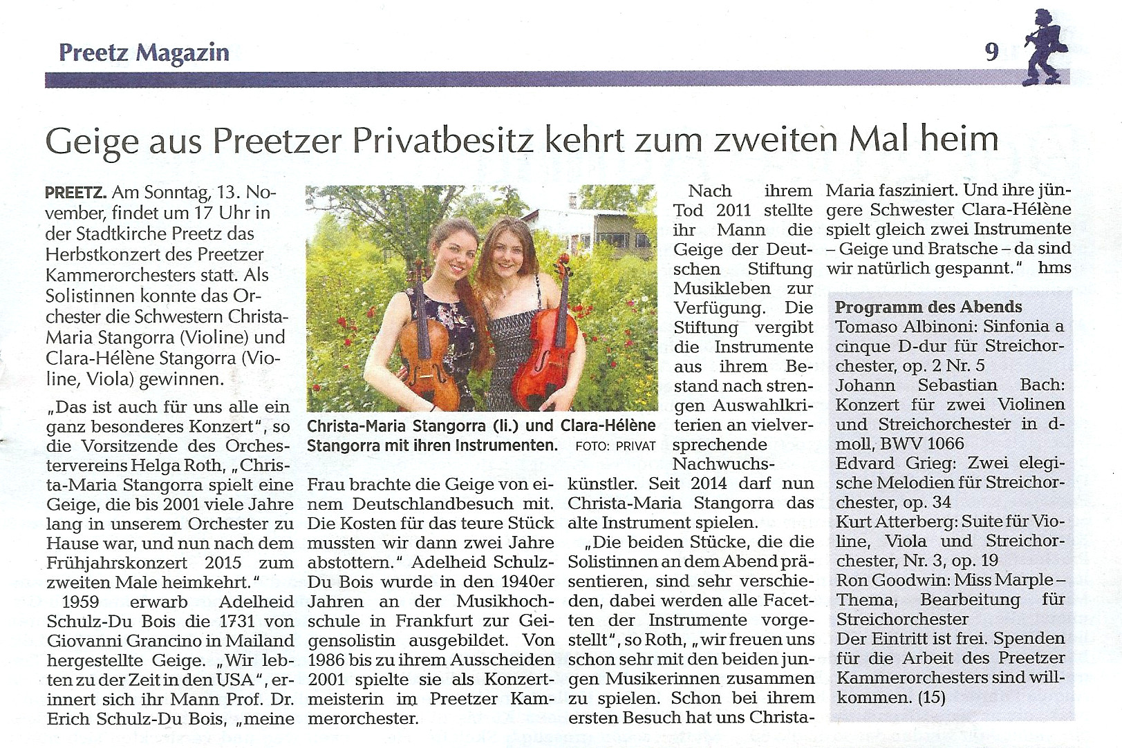 Das Preetzer Kammerorchester veranstaltet sein diesjähriges Herbstkonzert